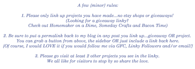 Thanks for asking us to link up! Stop over on Saturday and link up in our Crafty Showcase. We’ll add you to our regular linking schedule!! Thanks, Susie @Bowdabra